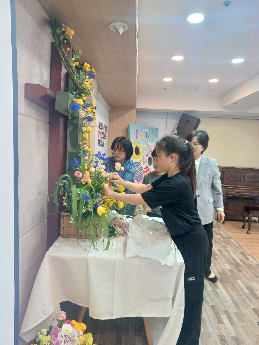 '나를 대신해 죽으신 예수님의 아름다운 십자가, 꽃으로 그 십자가를 꾸미며 감사와 사랑을 드립니다'