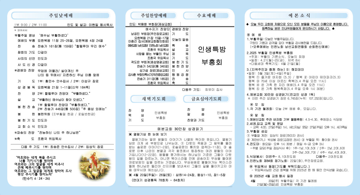 4월 20일 주보 페이지 정보 작성자 관리자 댓글 0건 조회 436회 작성일 25-04-19 21:20 본문 4월 20일 주보 목록 이전글4월 27일 주보 25.04.26 다음글4월 13일 주보 25.04.12 댓글목록 댓글목록 등록된 댓글이 없습니다.