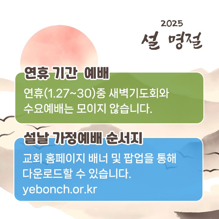 2025년 설 명절 연휴기간 예배 안내
